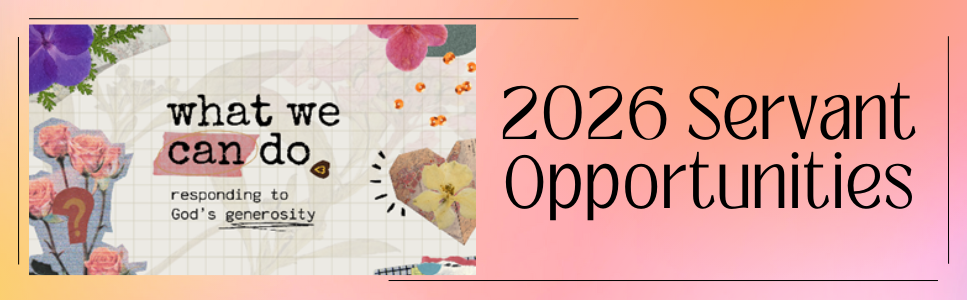 Below are a list of service opportunities, please check the box for any and all areas where you see a place you are called to serve. Checking the box only shows interest and not that you will automatically be signed up to lead that item. Someone will be in touch once all forms have been collected.